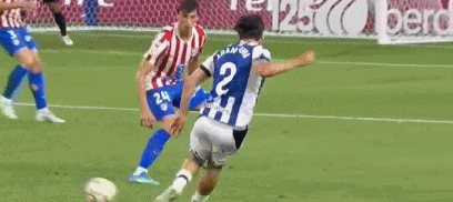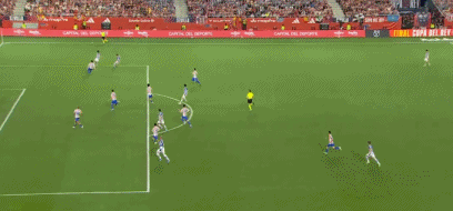 第24分钟,阿兰布鲁右路斜传,格德斯中路包抄停球抽射,普维尔放铲形成折射,直奔右上角而去,擦着立柱偏出,马竞逃过一劫。