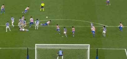 第83分钟,巴埃纳左路传中,马科斯-略伦特右路回敲,阿尔马达横传,阿尔瓦雷斯世界波直挂死角,马竞再度扳平,2-2!